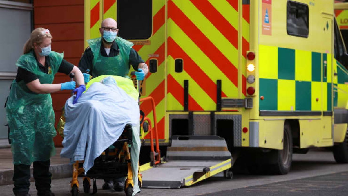 Nhân viên y tế đang vận chuyển người bệnh tại Bệnh viện Hoàng gia London. Ảnh: Reuters
