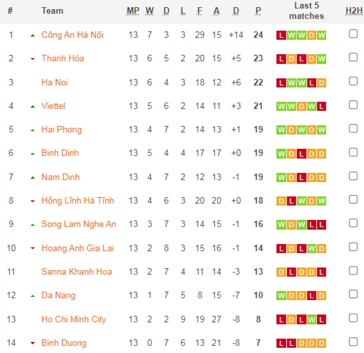 Bảng xếp hạng V-League 2023 sau 13 vòng đấu.