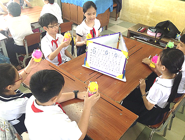 Âm nhạc là môn học vừa dễ, vừa khó, đòi hỏi sự cảm âm cao cũng như năng khiếu của từng học sinh. Giáo viên dạy nhạc Nguyễn Hoàng Minh Trang tâm tình: “Qua nhiều năm giảng dạy, tôi nhận thấy: giáo viên thường thực hiện mẫu cho học sinh làm theo, không tạo điều kiện cho học sinh phát huy khả năng tự học, tìm tòi kiến thức mới, dẫn đến lớp học thiếu sự năng động, tích cực. Để khắc phục tình trạng này, tôi đã nghiên cứu và thực hiện Chiếc hộp đa năng, có thể thực hành được nhiều kiến thức mới và thực hiện được nhiều trò chơi vui, bổ ích, giúp cho lớp học thêm năng động”.