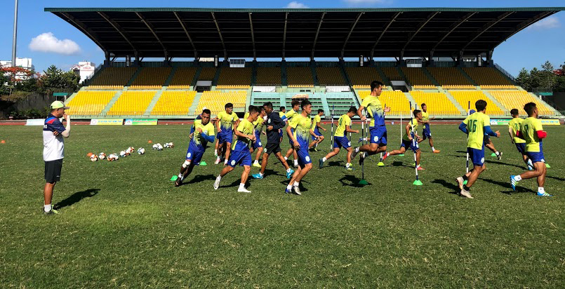 Buổi tập của các cầu thủ XSKT Cần Thơ trên sân Cần Thơ.