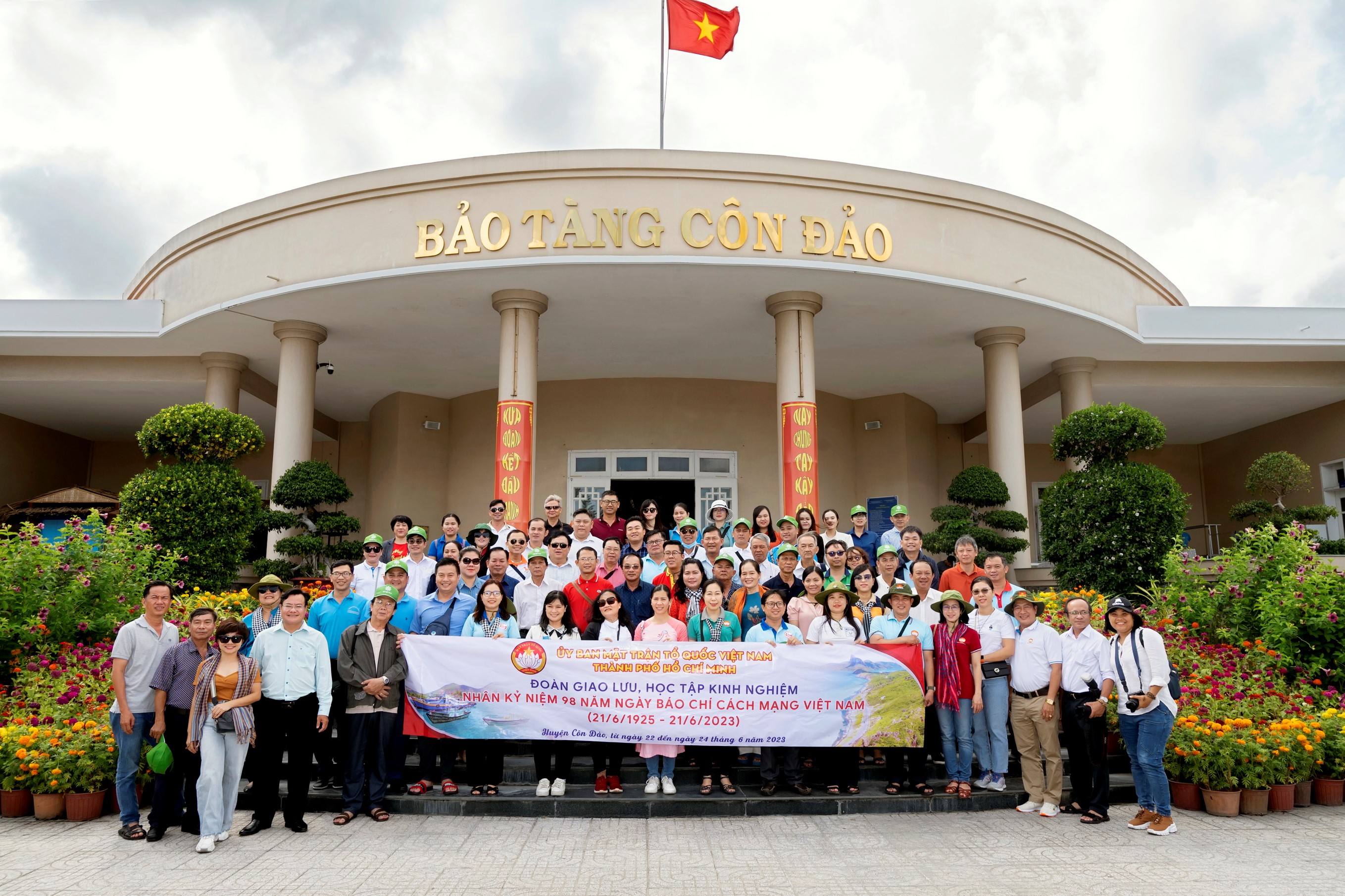 | Ủy ban Mặt trận Tổ quốc Việt Nam Thành phố Hồ Chí Minh thăm, chúc mừng cơ quan báo chí và họp mặt cộng tác viên tại Côn Đảo. (Ảnh: PV) |
