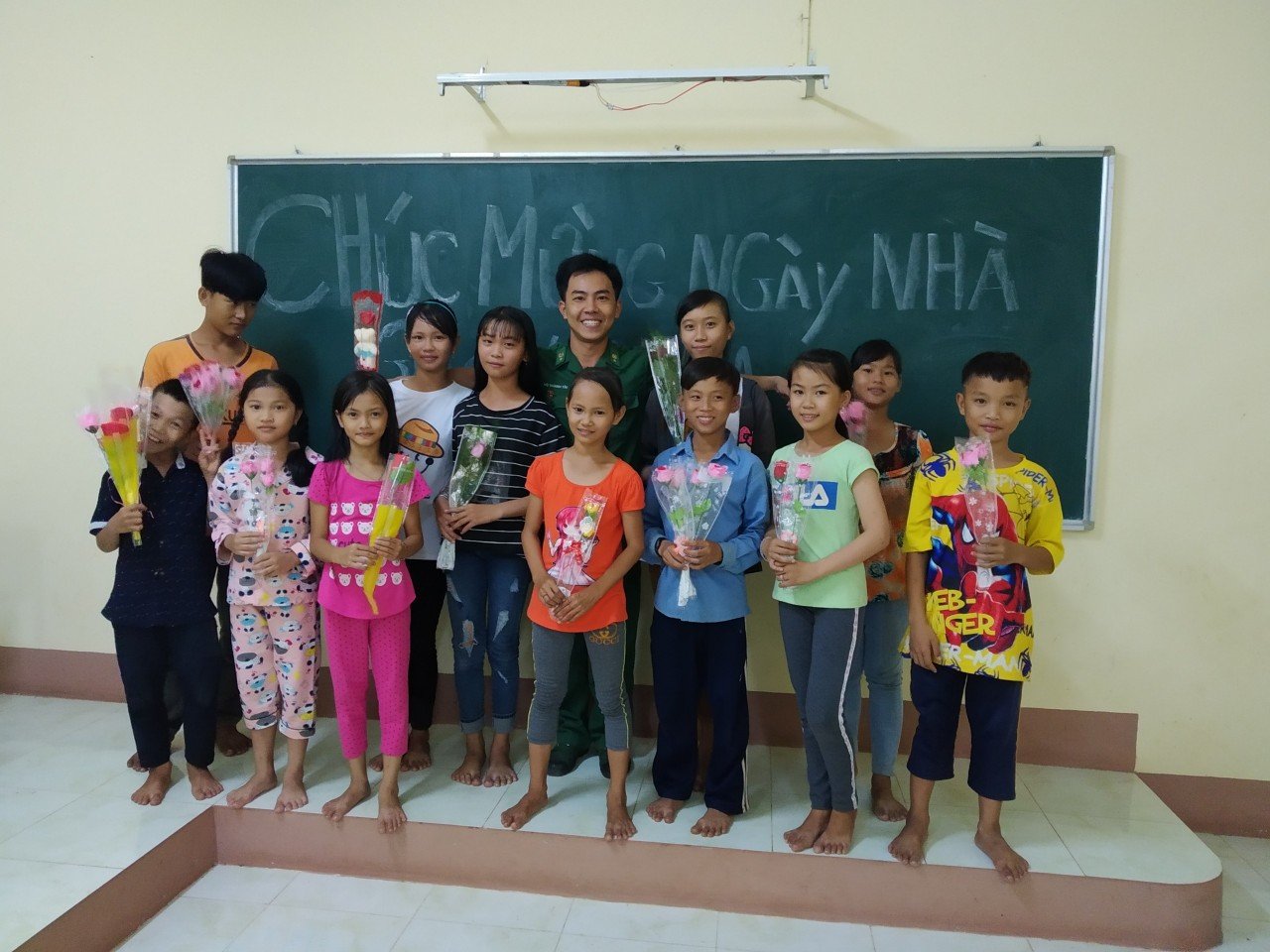 | Trong không gian tĩnh mịch, những tiếng giảng bài của thầy giáo trẻ, giọng đọc đánh vần của tụi trẻ vang lên làm không khí trở nên vui vẻ hơn. Từ sự nhiệt tình, tận tâm chỉ dạy của thầy giáo biên phòng, bọn trẻ tiếp thu bài nhanh hơn. Những chữ cái, đánh vần được bọn trẻ đọc khá lưu loát. Các phép cộng, trừ, nhân, chia đơn giản được bọn trẻ trả lời đúng. Mong rằng, khi biết đọc, biết viết, các em sẽ có cuộc sống tốt đẹp hơn ở phía trước". |