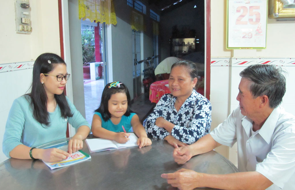 Mỗi buổi tối, chị Võ Thị Thúy Yên cùng ba mẹ chồng thường dạy con gái học