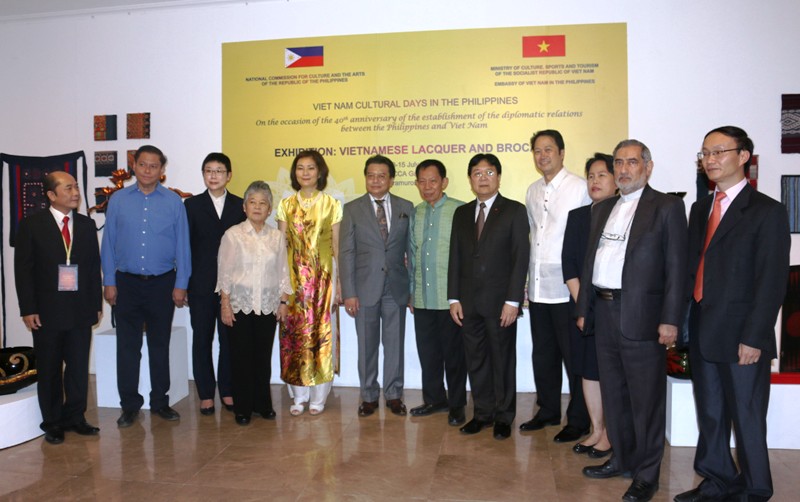 Trong khuôn khổ “Những ngày Văn hóa Việt Nam tại Philippines”, chiều 13/7, tại thủ đô Manila đã diễn ra lễ khai mạc Triển lãm “Sơn mài và thổ cẩm Việt Nam”. Hoạt động này do Trung tâm Triển lãm Văn hóa Nghệ thuật Việt Nam tổ chức, trưng bày hơn 100 hiện vật gồm các sản phẩm sơn mài và thổ cẩm truyền thống, trang phục áo dài, trang phục một số dân tộc và đặc biệt là bộ sưu tập búp bê trong trang phục các dân tộc, cùng nhiều hiện vật thổ cẩm khác.