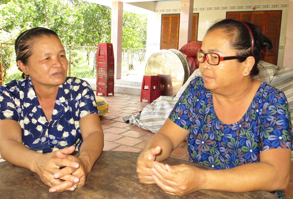 Chị Đặng Thị Điệp (bên trái) tâm sự cùng chị em phụ nữ để tháo gỡ khó khăn trong cuộc sống gia đình