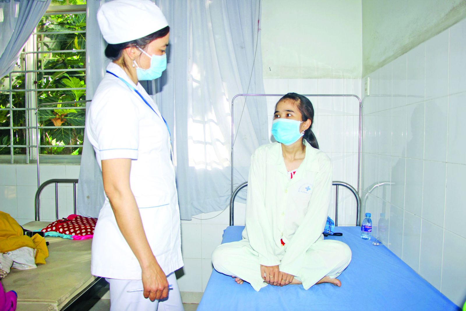 Nữ hộ sinh Đỗ Thị Loan thăm hỏi tình hình sức khỏe bệnh nhân Lê Ngọc Châu (xã Long Trì, huyện Châu Thành). Chị Châu nhập viện khi cảm thấy đau ở vùng bụng vào những ngày đầu thai kỳ. Sau thời gian điều trị, sức khỏe chị ổn định
