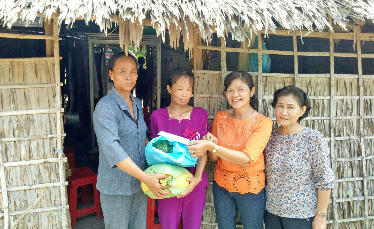 Chị Nguyễn Thị Đệ (thứ hai, phải qua) tặng quà cho phụ nữ có hoàn cảnh khó khăn
