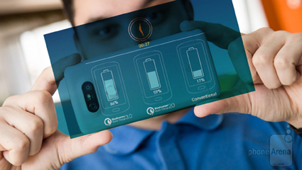 Nhà sản xuất Hàn Quốc LG đang rất mạnh mẽ ở công nghệ sạc nhanh khi siêu phẩm V10 đang giữ ngôi vị quán quân về sạc nhanh. Với viên pin 3.000 mAh, V10 không có một thời lượng pin lý tưởng (thực sự, nó thường cạn pin vào cuối ngày nếu sử dụng nhiều), nhưng bạn có thể cắm sạc chỉ trong vài phút để có được lượng pin "cứu hộ" cần thiết. Nó cũng chỉ mất 1 giờ 5 phút để sạc từ 0-100%.