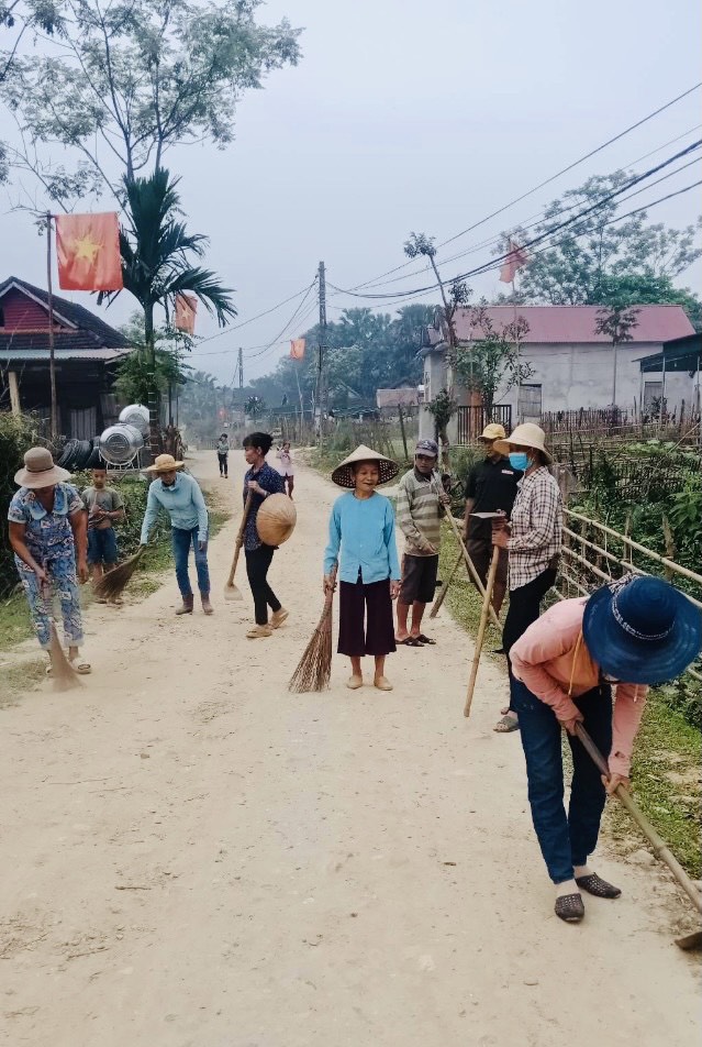 | Các "nữ thủ lĩnh" của xã biên giới Môn Sơn vận động bà con vệ sinh xóm ngõ giữ vệ sinh môi trường. |