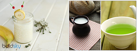 Dùng chung chuối với sữa (ảnh trái) hoặc sữa với trà xanh là một sai lầm.