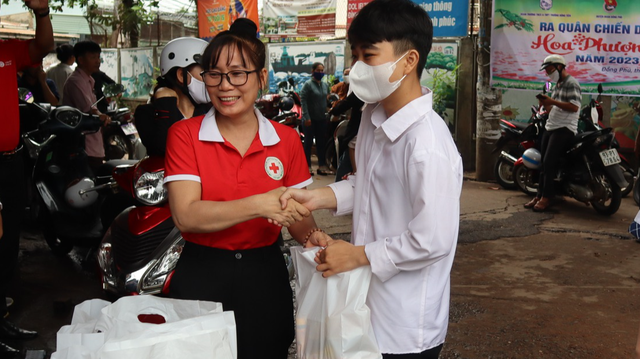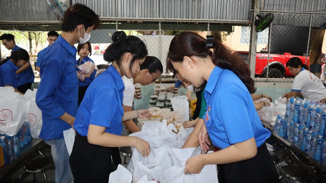 Ngày 28/6, hơn 40 tình nguyện viên là các thầy, cô giáo, đoàn viên, thanh niên, học sinh và các nhóm thiện nguyện tại thành phố Đồng Xoài (tỉnh Bình Phước) đã cùng tham gia hỗ trợ, chung tay nấu các suất cơm 0 đồng để trao tận tay thí sinh có hoàn cảnh khó khăn, xa nhà tại các điểm thi của kỳ thi THPT năm 2023.
