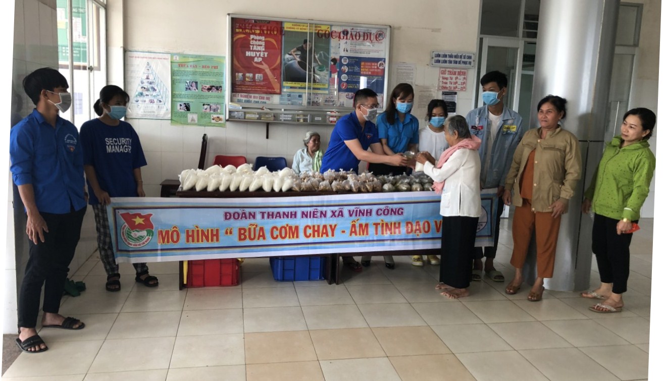 Phát huy truyền thống “Lá lành đùm lá rách”, nhằm chia sẻ khó khăn cùng những hoàn cảnh thiếu may mắn, thời gian qua, Đoàn xã Vĩnh Công có nhiều hoạt động từ thiện xã hội. Từ ý tưởng hướng đến những gia đình nghèo, hỗ trợ BN, Ban Chấp hành Đoàn xã phối hợp bếp ăn từ thiện của phật tử chùa Linh Tôn (ấp 1, xã Vĩnh Công) và Phòng Tổ chức, Trung tâm Y tế huyện, hỗ trợ bữa ăn chay cho BN cũng như thân nhân có hoàn cảnh khó khăn.
