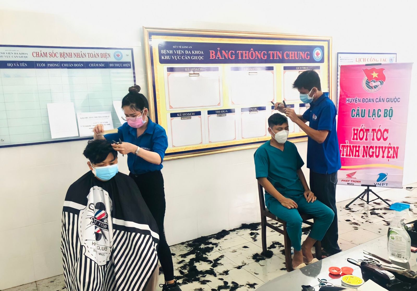 Thời gian qua, để phòng, chống dịch Covid-19, nhiều cơ sở tạm dừng hoạt động, trong đó có các tiệm cắt tóc. Tóc dài, không được cắt gây bất tiện cho cán bộ, nhân viên bệnh viện trong thực hiện nhiệm vụ. Hiểu được điều đó, Câu lạc bộ Hớt tóc tình nguyện của Huyện đoàn Cần Giuộc tổ chức cắt tóc miễn phí cho cán bộ, nhân viên Bệnh viện Đa khoa khu vực Cần Giuộc. Theo Quyền Bí thư Huyện đoàn Cần Giuộc - Đỗ Thị Thảo Phương, tham gia hoạt động lần này có 4 tình nguyện viên, trước khi cắt tóc, các thành viên đều sát khuẩn tay, đeo khẩu trang để bảo đảm an toàn. Được thành lập từ năm 2017, câu lạc bộ chủ yếu cắt tóc ở các điểm trường và trong các chương trình hoạt động của Huyện đoàn.