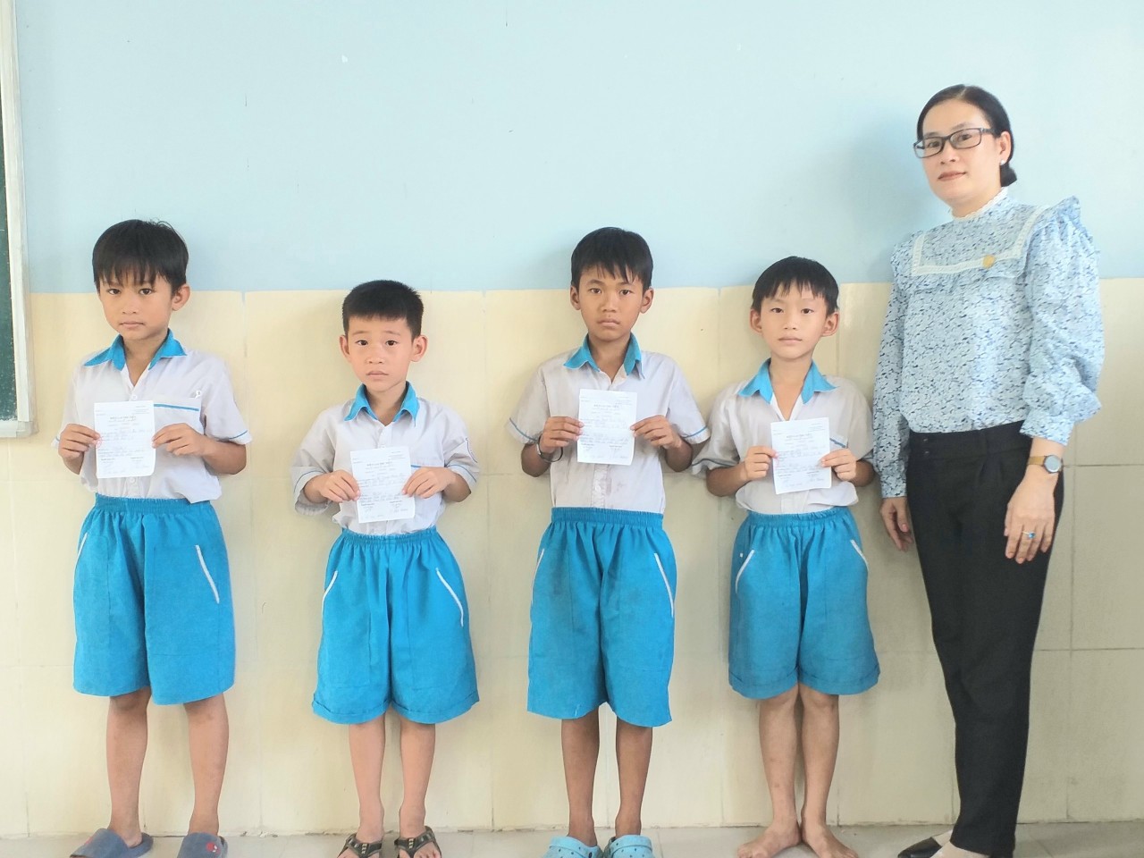 Thông qua mô hình Vì trái tim và nụ cười trẻ thơ, xã Nhị Thành (huyện Thủ Thừa) tặng thẻ BHYT cho học sinh có hoàn cảnh khó khăn