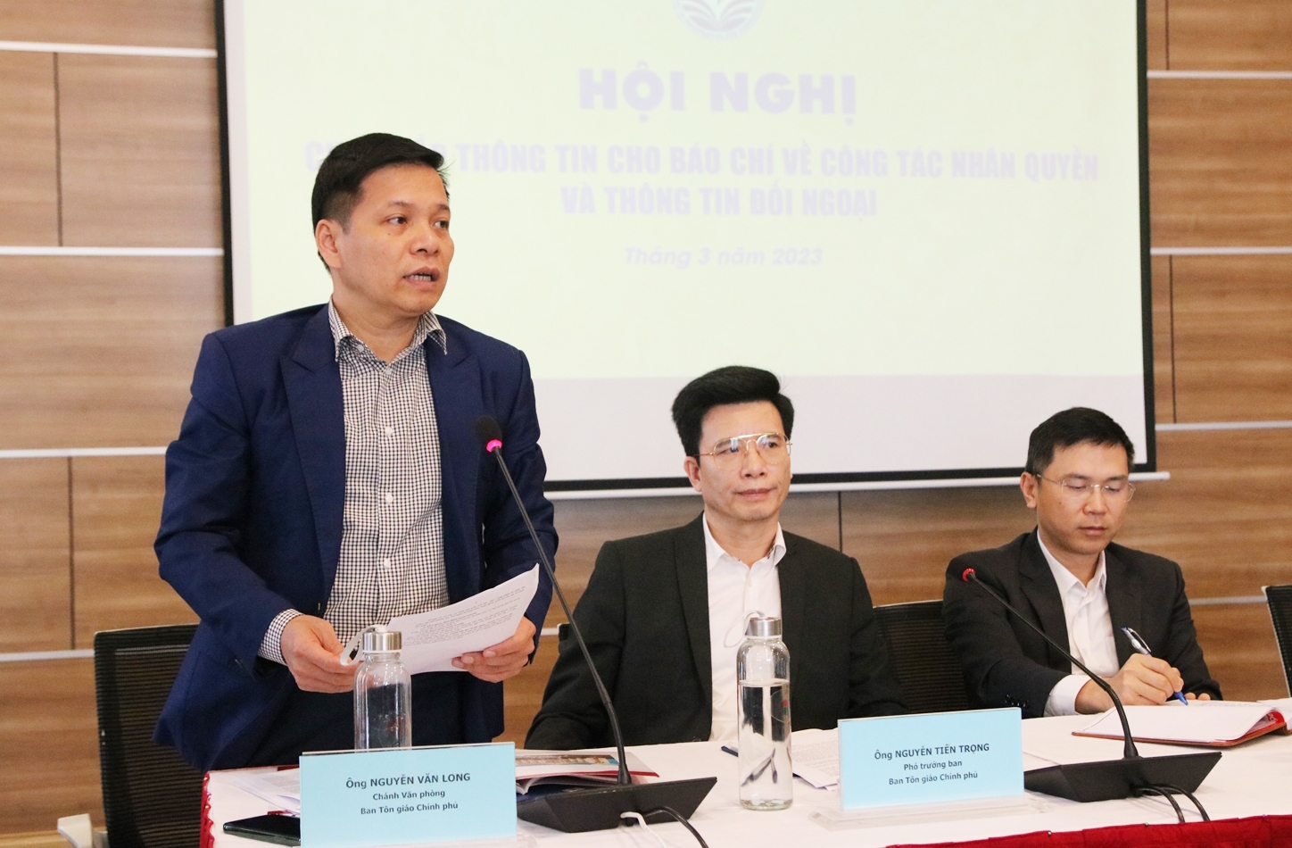 Tại Hội nghị cung cấp thông tin cho báo chí về công tác nhân quyền và thông tin đối ngoại tháng 3/2023, ông Nguyễn Văn Long, Chánh Văn Phòng Ban Tôn giáo Chính phủ, khẳng định, là một quốc gia đa tín ngưỡng, tôn giáo nhưng ở Việt Nam không có tôn giáo nào giữ vị trí độc tôn trong suốt chiều dài lịch sử dân tộc. Các tôn giáo đều bình đẳng trước pháp luật, Nhà nước không phân biệt đối xử vì lý do tín ngưỡng, tôn giáo. Mọi người hoàn toàn tự do lựa chọn theo hoặc không theo một tín ngưỡng, tôn giáo nào. Người có tín ngưỡng, tín đồ các tôn giáo được tự do bày tỏ đức tin tại gia đình, cơ sở thờ tự hoặc điểm nhóm đăng ký với chính quyền. “Ở Việt Nam, các tôn giáo chung sống hài hòa, đoàn kết, gắn bó đồng hành với dân tộc, không có xung đột sắc tộc, xung đột tôn giáo. Chức sắc, chức việc, nhà tu hành, tín đồ các tôn giáo tích cực tham gia các phong trào xã hội, từ thiện xóa đói giảm nghèo, đóng góp thiết thực vào sự phát triển đất nước” – ông Nguyễn Văn Long nhấn mạnh.