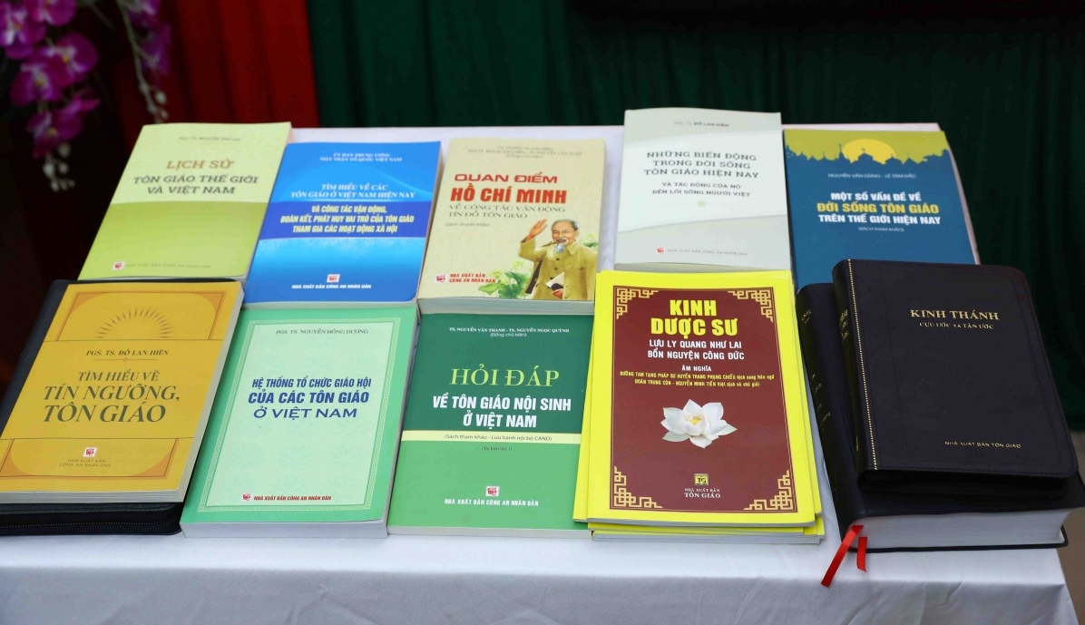 | Ấn phẩm tôn giáo đưa vào sử dụng tại các Trại giam Bộ Công an. (Ảnh: VOV) |