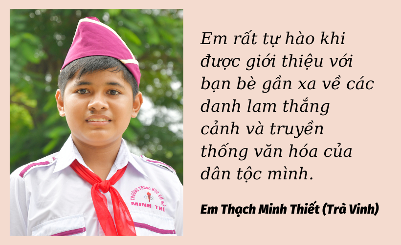 Được thầy cô và các anh, chị cán bộ Đoàn chọn tham gia Ngày hội Minh Thiết cảm thấy rất vui. Dù ở Trà Vinh, nhưng nhờ có hoạt động của ngày hội, Minh Thiết và các bạn mới có dịp đến tham quan khu di tích lịch sử Đền thờ Bác Hồ ở xã Long Đức, thành phố Trà Vinh; khu di tích Bến tiếp nhận vũ khí Cồn Tàu và các công trình điện gió tại thị xã Duyên Hải.
