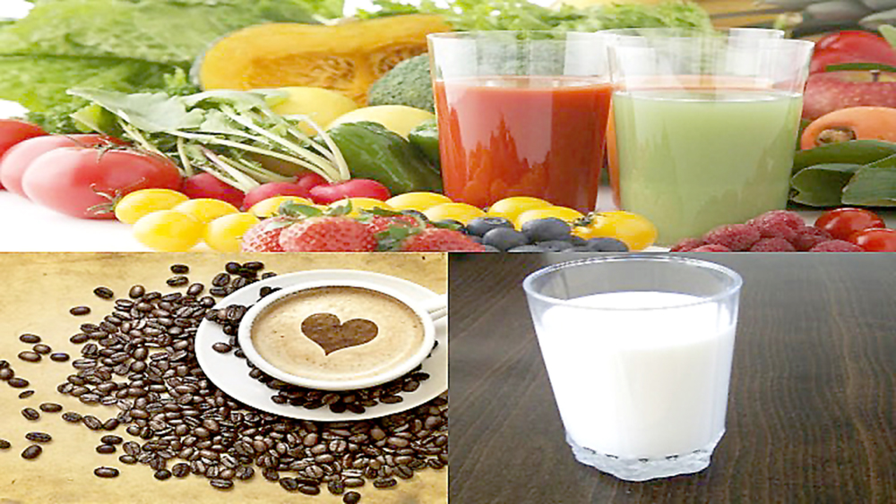 Nước ép từ rau củ quả, cà phê và sữa ít béo tốt cho bệnh nhân tiểu đường. Ảnh: Best Diabetes Solutions