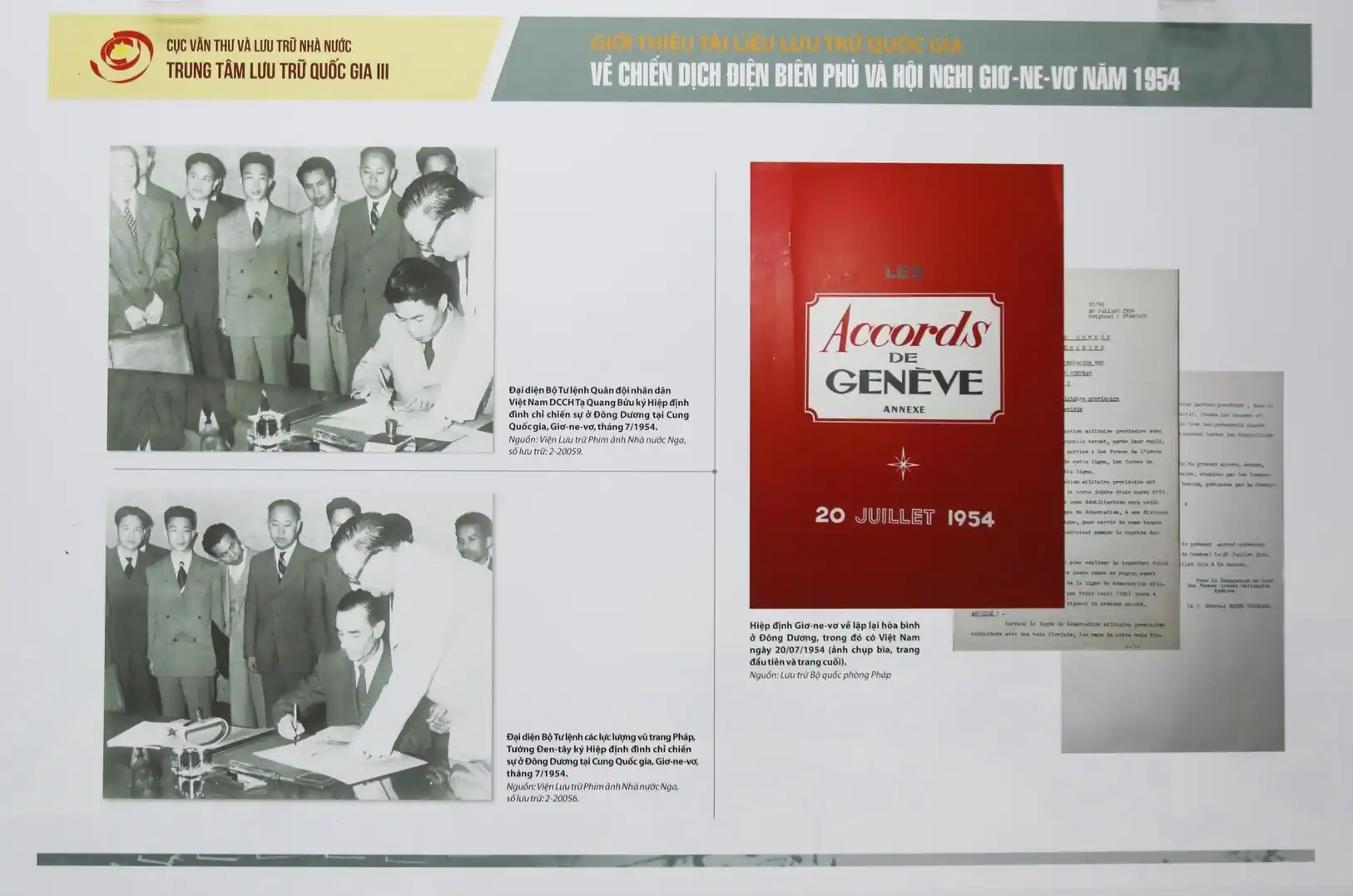 Ðặc biệt, những tư liệu về Hội nghị Genève về lập lại hòa bình ở Ðông Dương năm 1954, gồm những tài liệu, hình ảnh về hoàn cảnh lịch sử, diễn biến, kết quả hội nghị, tác động và quá trình thực thi hiệp định; dư luận thế giới đối với hội nghị… cũng được giới thiệu dịp này. Trong đó, Trung tâm Lưu trữ quốc gia III công bố nhiều bản tuyên bố về lập trường, quan điểm của các bên tham gia hội nghị, về sự ủng hộ của bạn bè quốc tế đối với Việt Nam… phản ánh một cách sinh động về diễn biến của Hội nghị Genève.