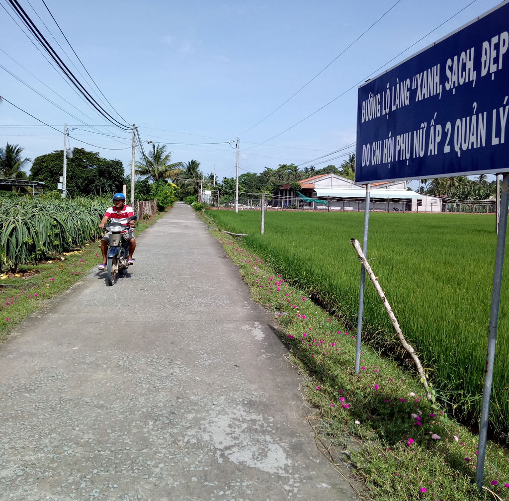 Lộ Làng, xã Hòa Phú là một trong những đường hoa do PN Châu Thành thực hiện. Hai bên đường khá sạch sẽ, có những hàng cây xanh mượt, hoa mười giờ đủ màu sắc. Chị Mai Thị Anh Thi, ngụ xã Hòa Phú, chia sẻ: Nhìn con đường sạch, đẹp, người dân cũng ý thức hơn trong việc giữ gìn vệ sinh môi trường. Một số người dân khi chạy xe ngang qua tuyến đường này đều trầm trồ khen ngợi.