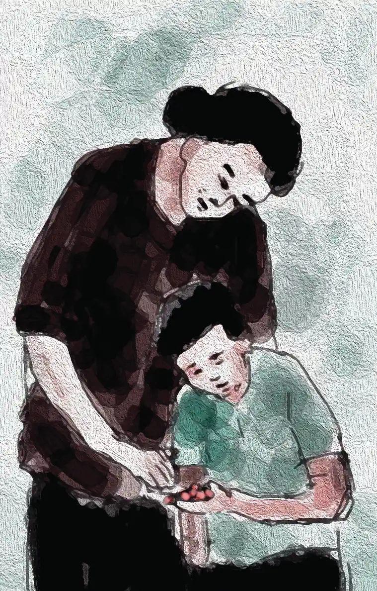 Má nhẹ nhàng vỗ về bàn tay nó đang nắm chặt tay má. Má đặt vào tay nó những viên kẹo màu hồng. Má vẫn thương nó như thuở còn thơ...
