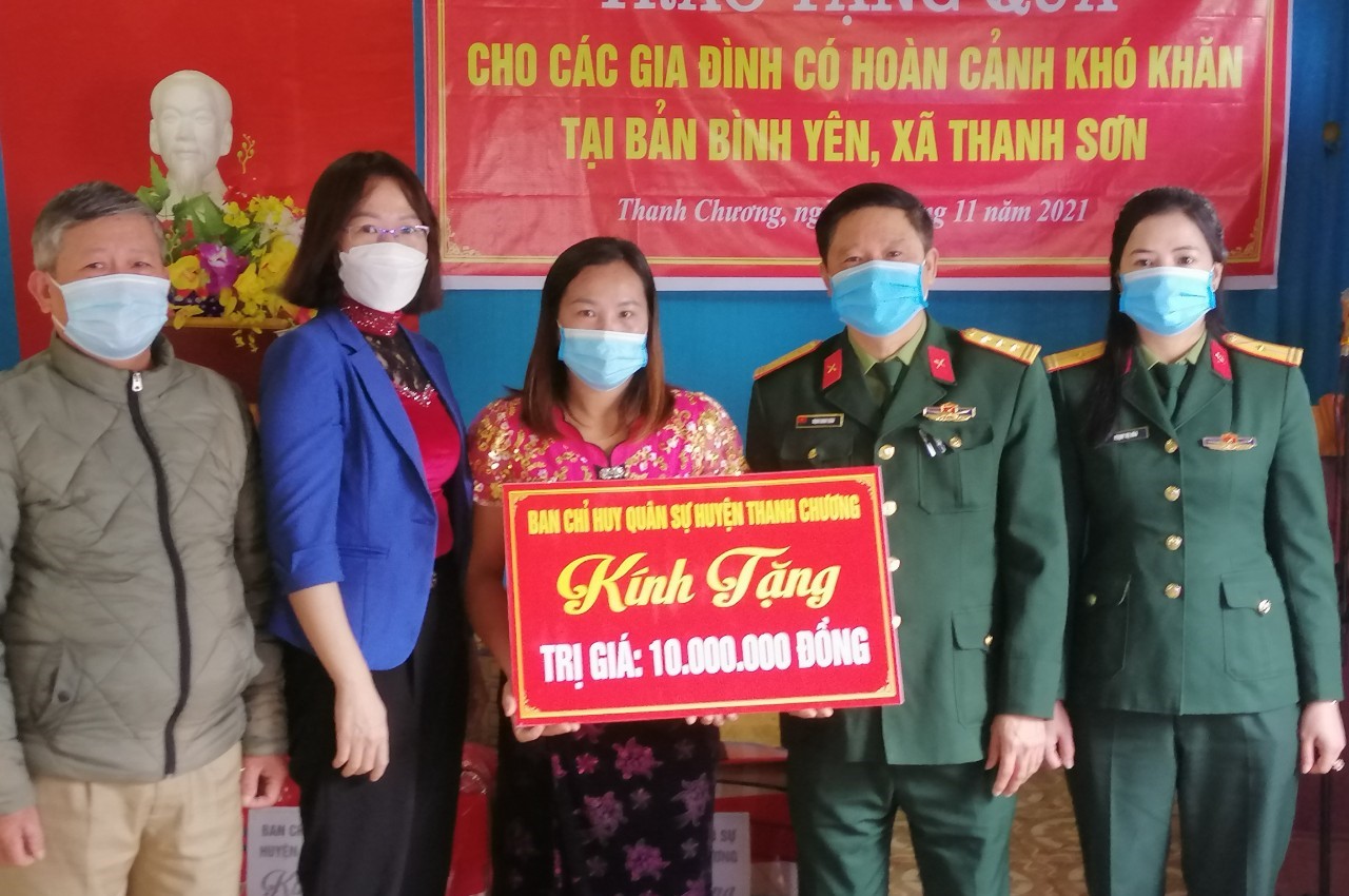Xuân về, đến với bản Bình Yên, xã Thanh Sơn, huyện Thanh Chương, chúng tôi được chứng kiến hình ảnh cán bộ, nhân viên Ban CHQS huyện Thanh Chương tặng quà, giúp đỡ cho bà con nhân dân nơi đây. Những chiếc chăn ấm, quần áo ấm, các suất quà được mang đến tận tay người dân, làm cho mùa đông nơi biên cương thêm ấm áp, yêu thương. Chị Lê Na ở bản Bình Yên nói: “Tôi rất xúc động trước tình cảm mà cán bộ, nhân viên Ban CHQS huyện Thanh Chương đã dành cho gia đình và nhân dân địa phương. Những việc làm của "Bộ đội Cụ Hồ" đã kịp thời giúp đỡ, động viên các hộ gia đình có hoàn cảnh khó khăn vươn lên thoát nghèo, ổn định cuộc sống, mang lại niềm vui cho bà con tái định cư”.