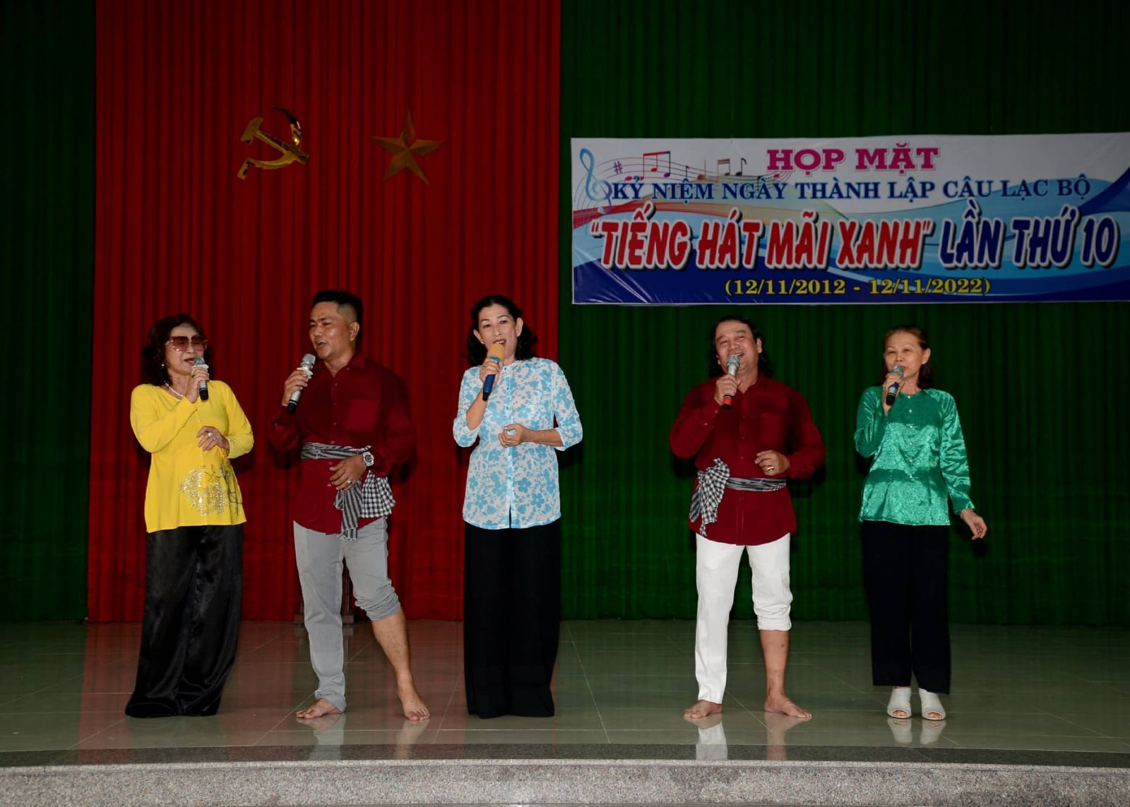 Các thành viên Câu lạc bộ Tiếng hát mãi xanh TP.Tân An trong buổi sinh hoạt kỷ niệm 10 năm thành lập