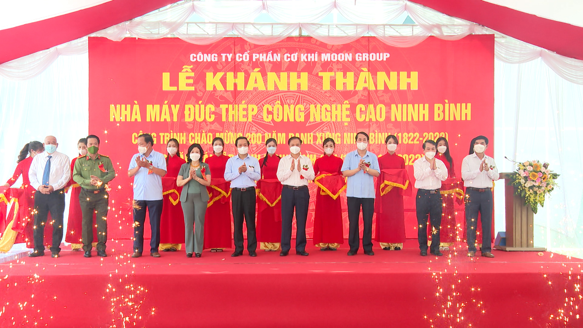 | Đồng chí Phạm Quang Ngọc, Phó Bí thư Tỉnh ủy, Chủ tịch UBND tỉnh và các đồng chí lãnh đạo dự lễ khánh thành Nhà máy đúc thép công nghệ cao Ninh Bình. |