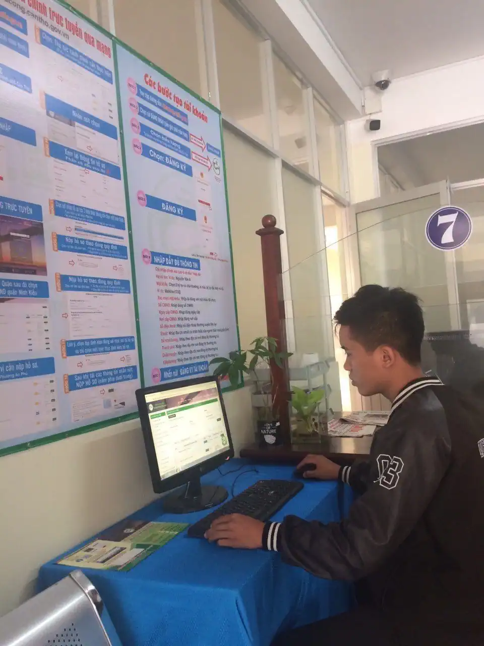 Người dân thực hiện nộp hồ sơ thông qua DVCTT tại Bộ phận Một cửa UBND phường An Phú, quận Ninh Kiều.