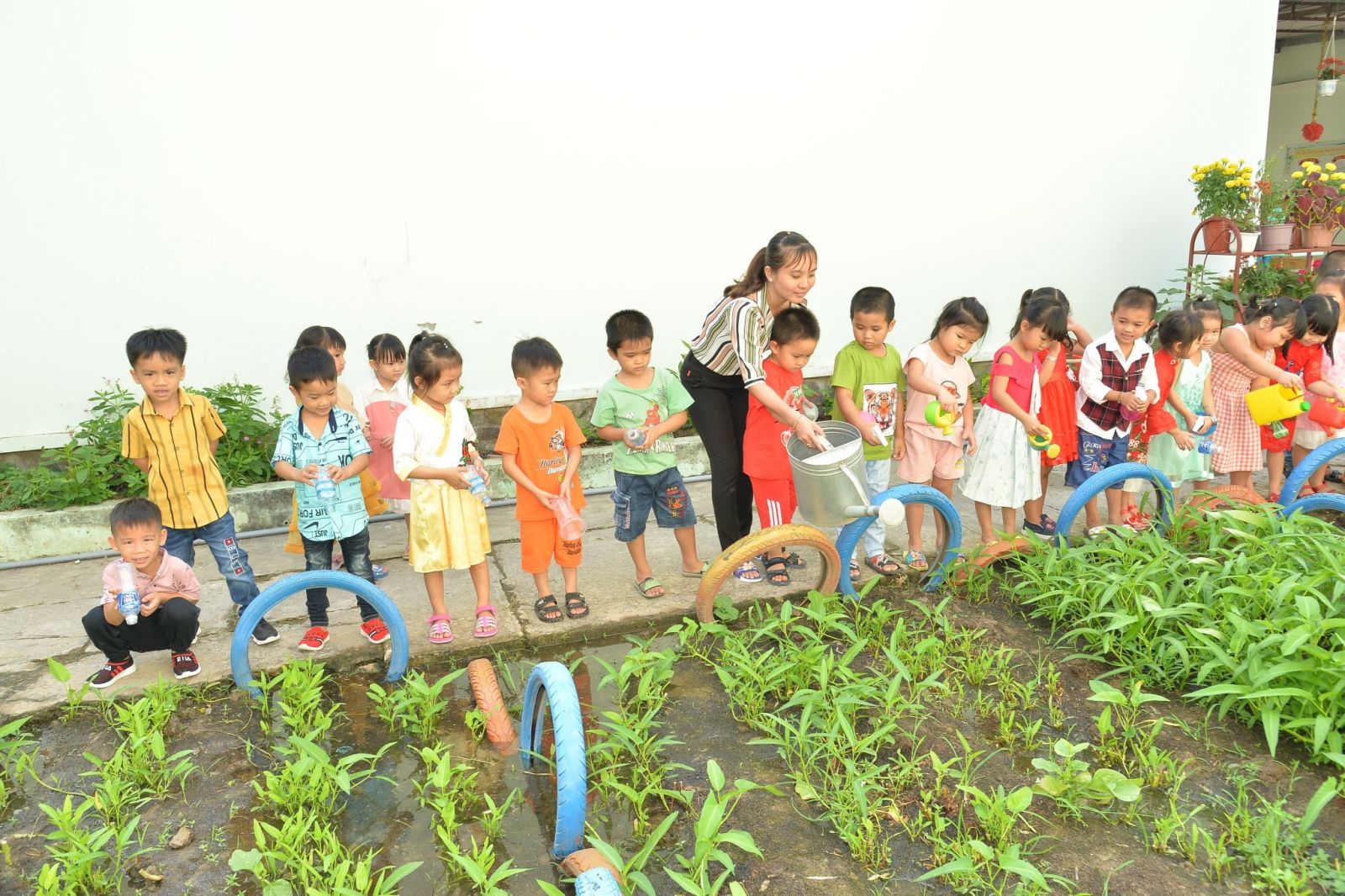 Hàng năm, trường luôn tạo điều kiện cho giáo viên được học bồi dưỡng nâng cao trình độ, tổ chức tập huấn các chuyên đề, thường xuyên tổ chức sinh hoạt chuyên môn, trao đổi kinh nghiệm, khuyến khích giáo viên tham gia các hội thi, hội giảng do nhà trường và phòng giáo dục phát động. Qua đó, tạo động lực cho đội ngũ giáo viên hăng say, toàn tâm cho công tác chăm sóc, giáo dục trẻ.