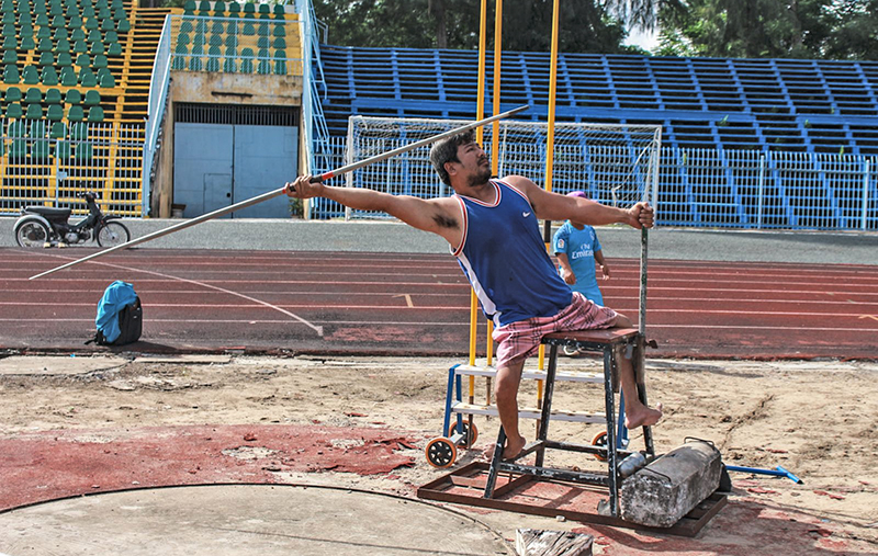 Các VĐV điền kinh khuyết tật Cần Thơ tập luyện. Ảnh: XUÂN THANH