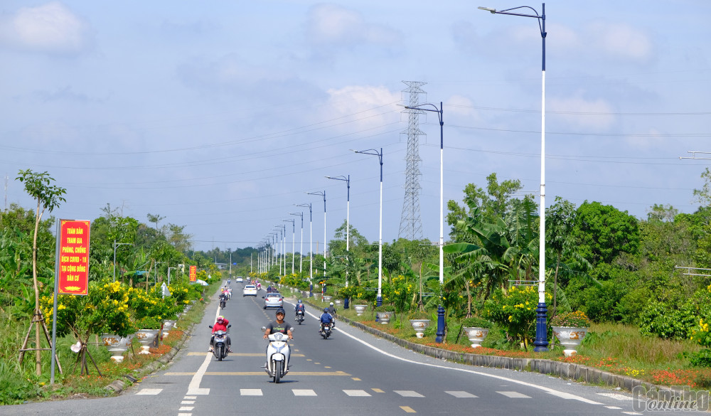 Đường Nguyễn Văn Cừ đoạn đi qua xã Mỹ Khánh, huyện Phong Điền sáng - xanh - sạch đẹp.