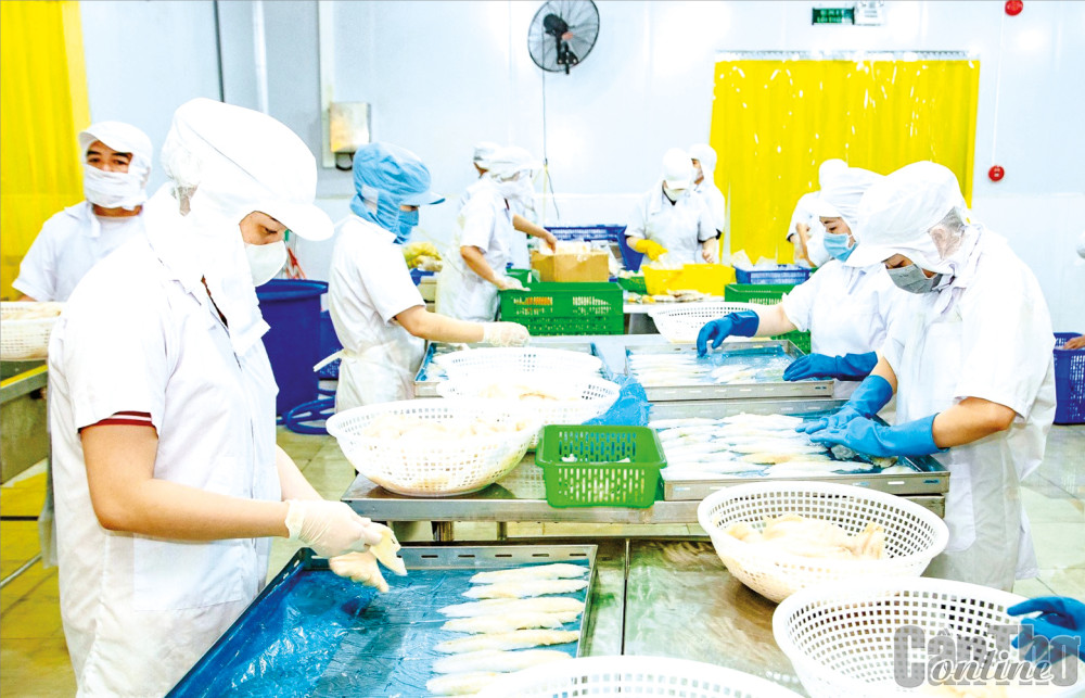 Hoạt động sản xuất tại một cơ sở chế biến của HTX sản xuất thương mại Nhất Tâm ở Khu công nghiệp Trà Nóc 2. Ảnh: M.H