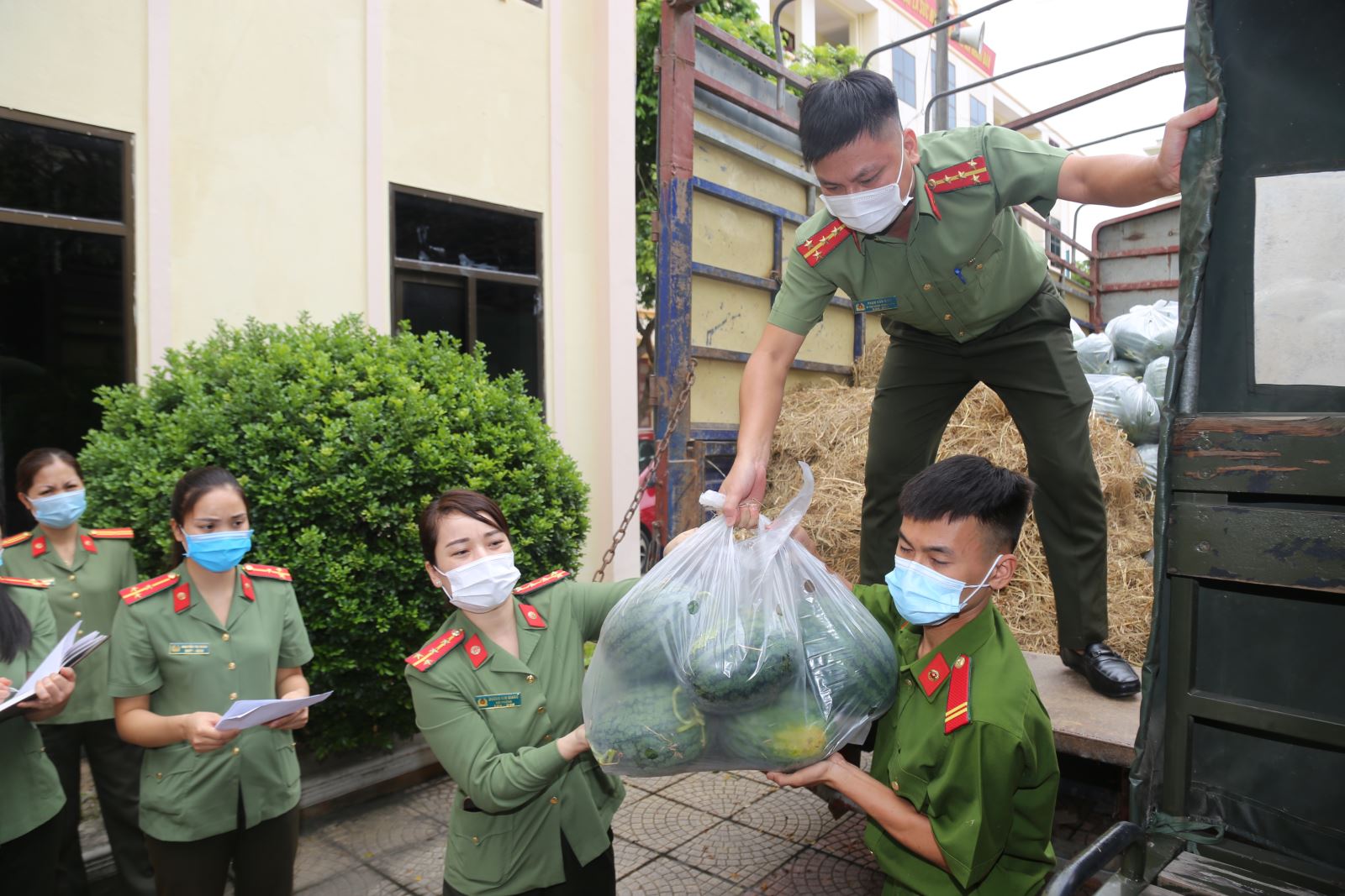 | Đoàn viên, Hội viên phụ nữ Công an tỉnh Bắc Ninh hỗ trợ tiêu thụ nông sản cho người dân vùng dịch. (Ảnh: PV). |