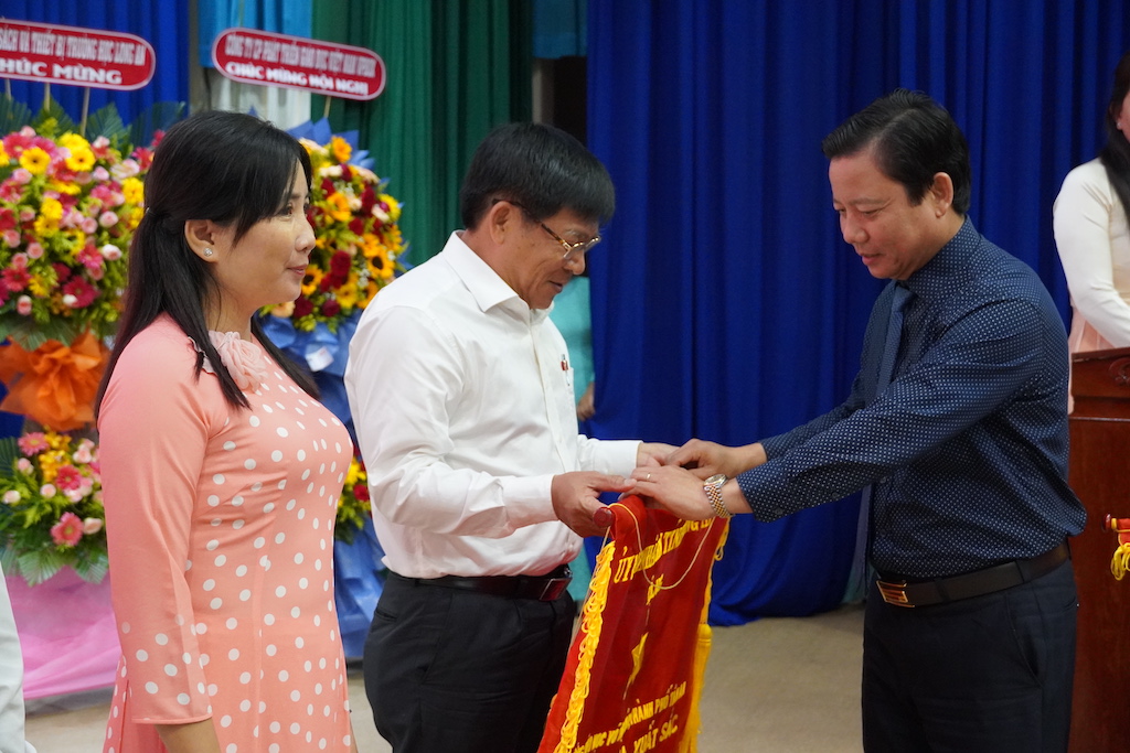 Phó Chủ tịch UBND tỉnh - Phạm Tấn Hoà trao cờ thi đua cho các đơn vị
