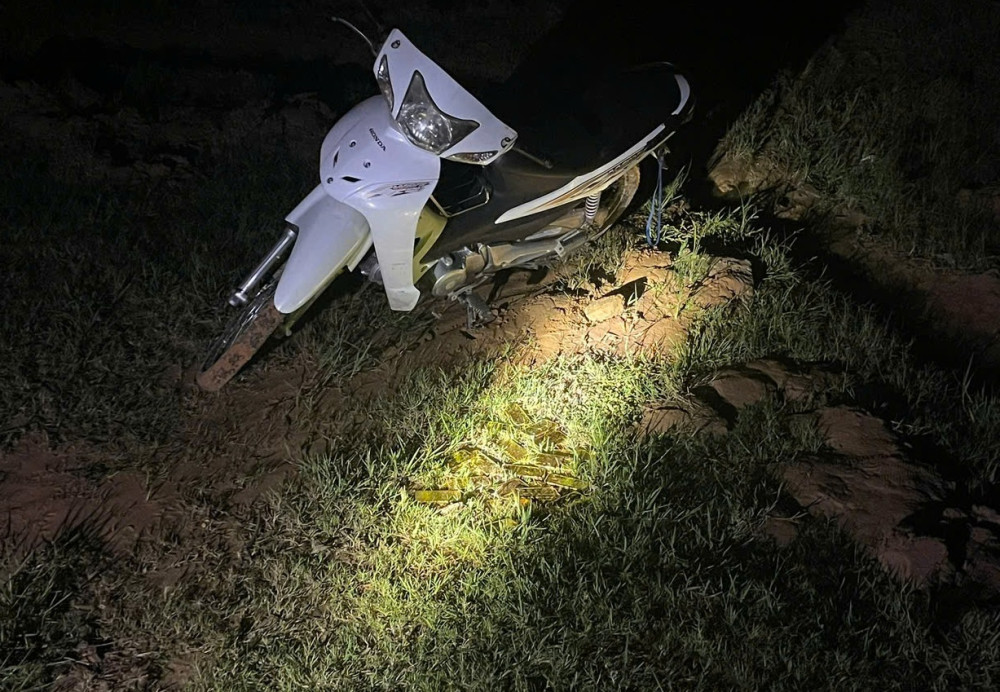 Lực lượng chức năng thu giữ vàng và phương tiện đối tượng bỏ lại hiện trường
