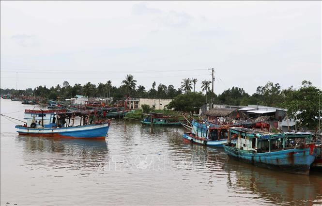 | Tàu cá của ngư dân neo đậu trên sông Cái Bé thuộc địa bàn huyện Châu Thành (Kiên Giang) (Ảnh chỉ có tính minh hoạ - Nguồn: TTXVN) |