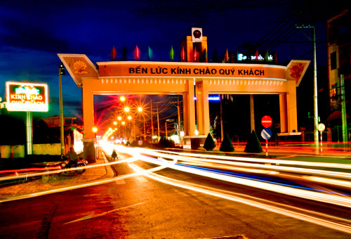 Một góc thị trấn Bến Lức lung linh về đêm. Ảnh: HD