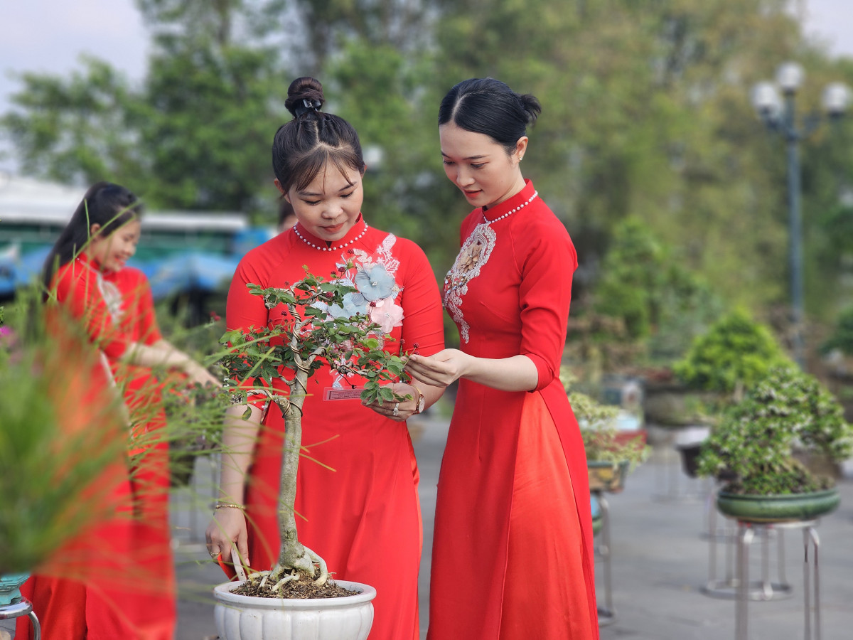 Du xuân đầu năm đang dần trở thành lựa chọn của nhiều người (trong ảnh: Du khách xem cây cảnh tại Hội hoa Xuân huyện Châu Thành)