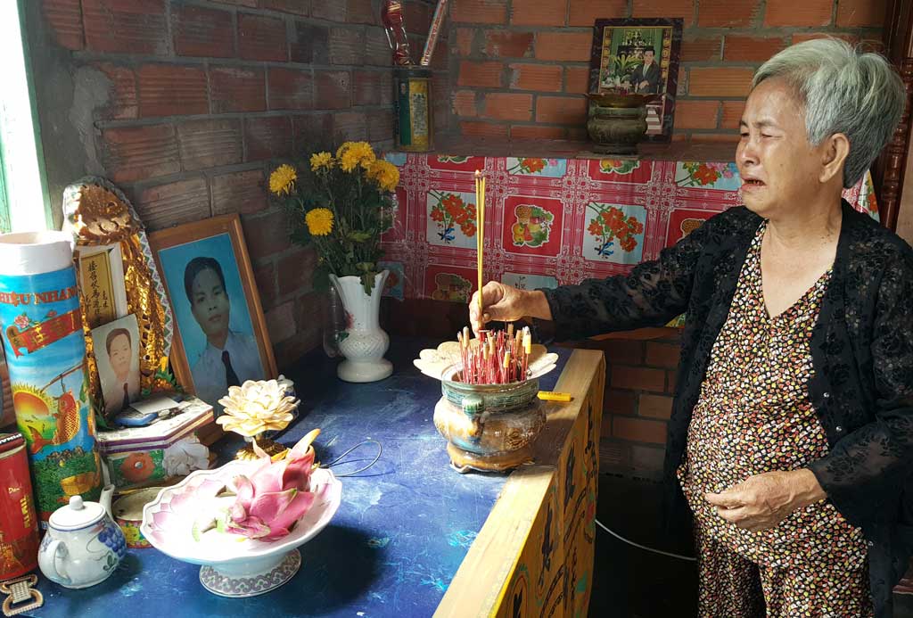 Bà Phạm Thị Thiết thắp hương cho con trai tử vong do tai nạn giao thông
