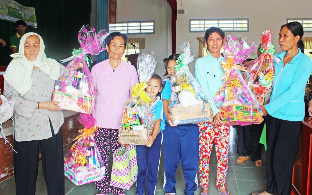 Câu lạc bộ thiện nguyện "Cỏ bốn lá" tặng quà tết cho các gia đình có hoàn cảnh đặc biệt khó khăn tại xã Thuận Mỹ, huyện Châu Thành