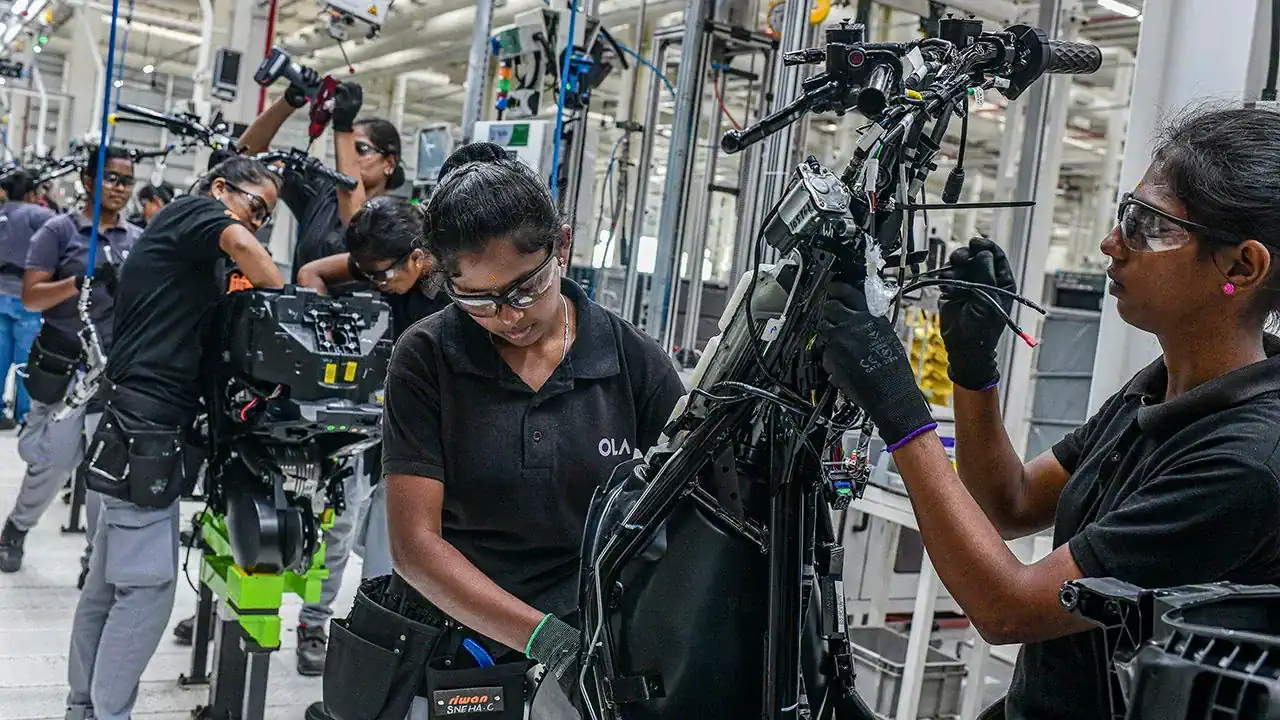 Dây chuyền lắp ráp toàn phụ nữ ở nhà máy tại bang Tamil Nadu của Ola.