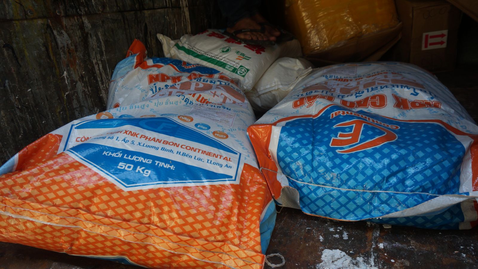 Những bao phân bón bị lực lượng chức năng tạm giữ