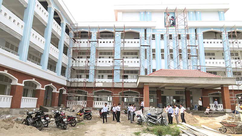 Một góc Trường THCS Lê Lợi (quận Ô Môn), đang được đẩy nhanh tiến độ xây dựng để kịp đưa vào sử dụng năm học mới 2018-2019. Ảnh: NG.NGÂN
