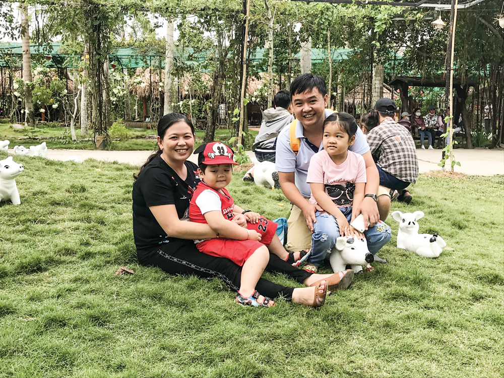 Đối với nhiều cặp vợ chồng, quà tặng nhau không đặt nặng giá trị vật chất. Một trong những món quà ý nghĩa ai cũng có, không tốn kém chính là dành thời gian quan tâm, chăm sóc nhau để cả nhà cùng vui. (Trong ảnh: Một gia đình trẻ đưa con đi chơi ở Khu du lịch Mỹ Khánh) .