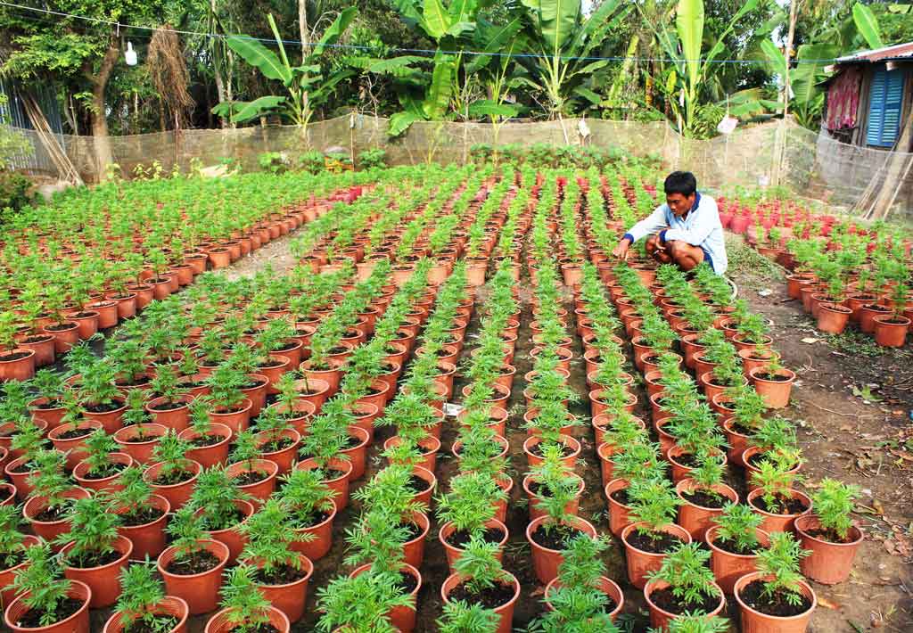 Gia đình ông Lê Văn Ngon, ngụ ấp Cả Gừa, xã Thạnh Hưng, nhiều năm trồng hoa bán tết, cho biết: Năm nay, gia đình tôi trồng 1.000 chậu vạn thọ, 400 cây trang vàng và vài chục gốc mai bán tết. Giá bán từ 25.000 đồng/chậu vạn thọ nên cũng có thêm thu nhập ngoài làm ruộng.