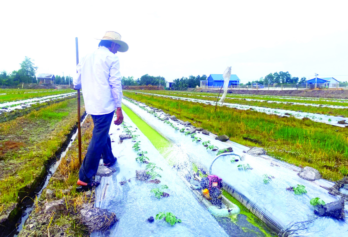 Với kinh nghiệm hơn 10 năm trồng dưa hấu tết, ông Võ Hoàng Giang (ấp Bình Đông, xã Bình Hòa Trung, huyện Mộc Hóa) cho biết, dưa hấu là loại cây trồng ngắn ngày, khoảng từ 55-60 ngày là thu hoạch và cho thu nhập cao hơn các loại rau màu khác. Tết năm nay, ông trồng 6ha dưa hấu giống Mặt trời đỏ.