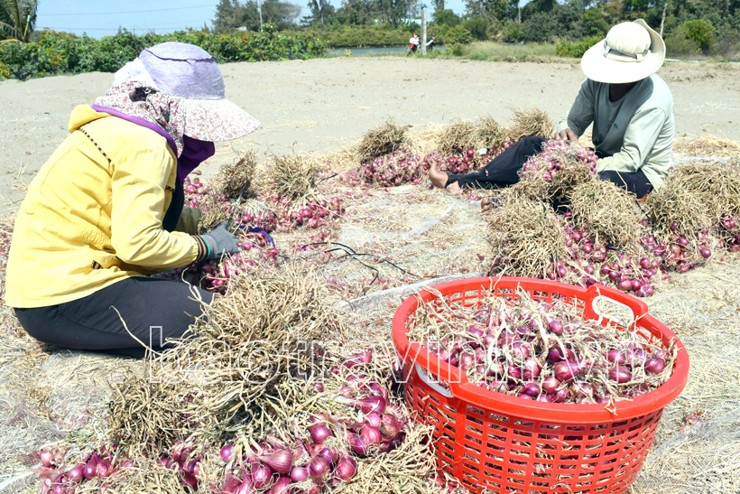 Nông dân ấp Định An thu hoạch củ hành tím.