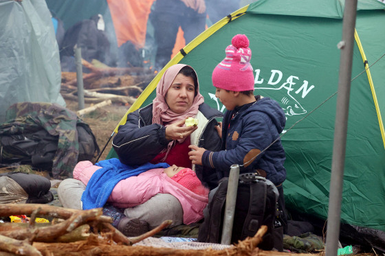 | Những người di cư đang bị mắc kẹt ở khu vực biên giới trong tình cảnh thiếu thốn nơi trú ẩn, đồ ăn, nước uống và các dịch vụ chăm sóc y tế cơ bản. (Ảnh: Leonid Scheglov/AFP via Getty Images) |