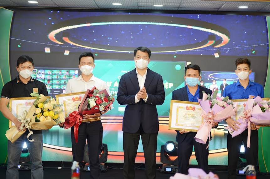 | Bí thư Trung ương Đoàn Ngô Văn Cương trao Bằng khen của Trung ương Đoàn TNCS Hồ Chí Minh cho các dự án xuất sắc có mặt tại chung kết |